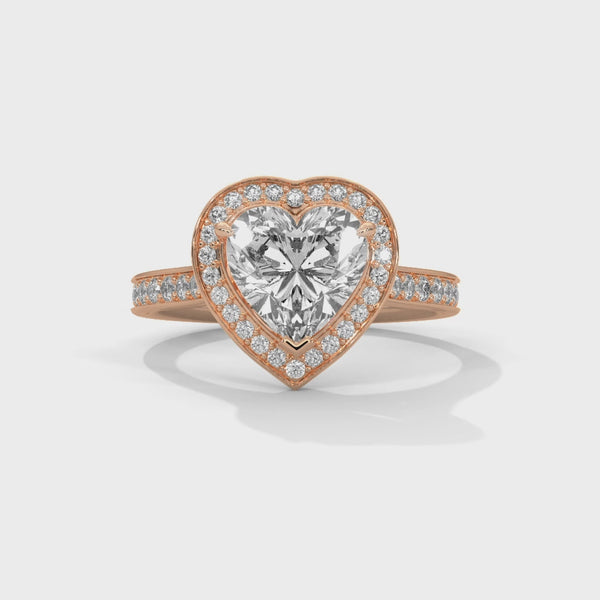 • Design: Heart Shape Halo Ring with Pavé Band